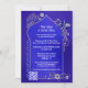 An elegant wedding reception only, post or after wedding invitation featuring silver stylised henna patterns printed on an indigo blue and deep purple background. An optional QR code template is added for your convenience. Nice to share photos of your wedding! On the back is the option to add your own photo. You can also delete the template image to reveal a blue matching background. Beautiful for an Indian or Arabic style wedding celebration.