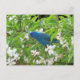 Pretty blue Indigo Bunting bird is perched on this blooming crabapple tree. Wildlife image captured in New Hampshire on a beautiful Spring day.