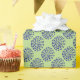 Indigo dark blue striped circle pattern on green wrapping paper