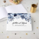 Beautiful arrangement of blue flowers decorates the top of this wedding guest book. The flower colours range from dark blue to light blue on a white background. The wedding couple names are written in a bold script font. Wedding Guest Book and the date and location are written below. Create a beautiful keepsake to remember a very special day.