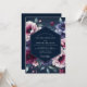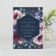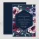 Experience a dramatic and romantic atmosphere with this elegant design. Lush, painterly blooms in shades of deep magenta, rich plum, and soft blush pop against a dark navy blue backdrop. Wispy foliage adds a touch of organic softness to the moody and opulent floral arrangement, creating a stunning nocturnal aesthetic for your special union.