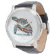 Gift an elegant, unique accessory with this Indigo Mosaic Sea Turtle Watch for Him. The watch face displays the vibrant geometric sea turtle design, featuring rich indigo and earth tones. It brings a sophisticated, artistic, and oceanic touch to the wrist.