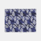 White indigo palm leaves layered on an indigo blue background, layered with more blue palms.