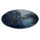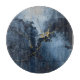 "A dramatic and sophisticated abstract piece featuring extremely heavy impasto texture and thick, deliberate brushstrokes. The palette is dominated by deep, rich blues, navy, and slate grays, contrasted by a creamy off-white or pale beige element at the top. Striking gold metallic accents streak across the canvas, suggesting fissures, lightning, or a flowing river of light that adds a focal point and a sense of movement. The high contrast and tactile surface create a powerful, visceral experience, making this a bold statement piece for contemporary decor."