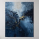 "A dramatic and sophisticated abstract piece featuring extremely heavy impasto texture and thick, deliberate brushstrokes. The palette is dominated by deep, rich blues, navy, and slate grays, contrasted by a creamy off-white or pale beige element at the top. Striking gold metallic accents streak across the canvas, suggesting fissures, lightning, or a flowing river of light that adds a focal point and a sense of movement. The high contrast and tactile surface create a powerful, visceral experience, making this a bold statement piece for contemporary decor."