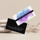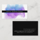 Chic watercolor business cards feature your name or company name overlaid in white on black, on a blooming inkblot illustration in eyecatching shades of indigo blue and violet purple. Add your full contact information to the back in white on black.