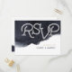 Modern chic simple typographic RSVP design on dark indigo blue watercolor background, great for modern wedding, evening wedding or nautical wedding.