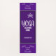 Indigo background with white text. Yoga Calming Zone quote. Typography text including inhale, exhale, breathe, mind, soul. Personalise Name in centre. White double five pointed star pose artwork inside deeper indigo, black, white geometric pattern in centre. Backside has Relax written diagonally in white text. Original Artwork Quote Design © 2020 TamiraZDesigns.