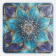 This sticker features a vibrant teal and indigo floral mandala painting with layered petals, gold accents and pearl-like dot details-luxury decorative art for serene interiors. Finished in a oil acrylic paint print.