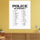 The "Indispensable Police Alphabet A to Z" design is a unique and handy reference to the police phonetic alphabet, with the goal of improving communication clarity. It is frequently used by law enforcement to avoid confusion when spelling terms, particularly over the phone or radio. Learning this alphabet increases your ability to communicate effectively in important situations.