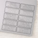 Transparent sticker sheet with individual addresses, suitable for mailing.