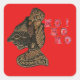 Indonesi Shadow Puppet Hohoho Design on Red canvas Square Sticker