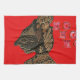 Indonesi Shadow Puppet Hohoho Design on Red canvas Tea Towel