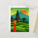 Indonesia Sunset Temple and Rice Terraces Postcard