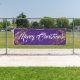This Holiday banner is shown in the outdoor style with grommets. Select from indoor or outdoor, with or without grommets. Shown in Purple with White "Merry Christmas" fancy script with two Gold looking swirls of stars on each end.