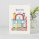 Fun and colourful indoor playground illustration and playful typography. This kids birthday party is perfect for either a girl or boy, can be personalised with your text and is great for a gymnastics, tumbling, jumping or indoor playscape themed party. The playground illustration incorporates your party details along side castle like towers, slides, ladders, bridges and a ball pit.