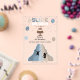 A cute blue tones kids boy indoor slide park playground design. A fun design featuring hand drawn illustrations of indoor park playground slides, kids, confetti and balloons. A cute children's indoor slide park playground theme design perfect for birthday's, bedroom decor and personalized gifts.