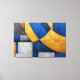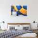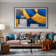 Modern abstract composition combining curved and square geometric shapes. Worn concrete texture in deep blue, mustard gold, and grey tones. Ideal for industrial or contemporary decor. Art that unites geometric precision with urban rusticity with elegance.