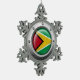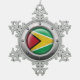 Industrial Guyana Flag with Steel Graphic Snowflake Pewter Christmas Ornament