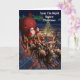 Industrial Vintage Santa Claus Flying Reindeer Card