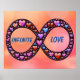 The infinity symbol covered with different colour hearts with the words "Infinite Love"