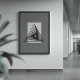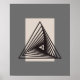 This eye-catching design plays with perspective and symmetry, drawing you into a seemingly infinite triangle tunnel against a soft beige and charcoal-grey backdrop. The layered triangles gradually decrease in size, leading to a small focal point at the centre, creating a striking sense of depth. Perfect for those who appreciate clean lines and minimalist art, this piece adds an intriguing and modern touch to any space.