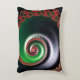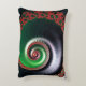 This work features a complex, swirling fractal pattern with a spiral structure that appears to extend infinitely inward. The primary colors are vivid red and lush green, contrasting against a deep, dark background. Along the spiral's path, intricate, smaller fractal shapes repeat, creating a sense of depth and movement. The red fractal elements resemble organic shapes, almost like blooming flowers or curled leaves. The green tones gradually transition to silvery whites closer to the center, adding a glowing effect. Overall, the image evokes a feeling of infinite complexity and dynamic energy.