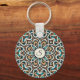 This design radiates movement and harmony through its interwoven pattern. At the centre, a flower-like mandala blooms in soft beige, rich brown, and deep black tones accented by vivid turquoise.