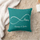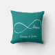 Personalised Teal Blue and White Infinity Love throw pillows. Forever Love featuring the infinity symbol and love in script font. Add your initials or names.