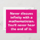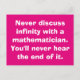 Never discuss infinity with a mathematician. You'll never hear the end of it.