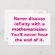 Never discuss infinity with a mathematician. You'll never hear the end of it.