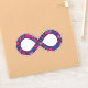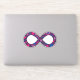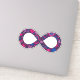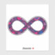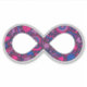 Show your dual pride! The infinity symbol represents all forms of neurodiversity, including autism and ADHD. This cheerful infinity symbol is filled with hearts, stars, rainbows, smiley faces, and polka dots, coloured in the gender-neutral Bi (Bisexual and/or Biromantic) Pride flag's colours of bright magenta pink, violet purple, and royal blue. The glittery texture gives it that extra unique flare — just like you!