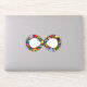 Show your dual pride! The infinity symbol represents all forms of neurodiversity, including autism and ADHD. This cheerful infinity symbol is filled with hearts, stars, rainbows, smiley faces, and polka dots, coloured in the gender-neutral Quasar Progress Pride flag's rainbow colours of red, orange, yellow, green, blue, purple, brown, black, white, pink, and blue. The glittery texture gives it that extra unique flare — just like you!