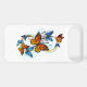Symbol infinity made of gold, decorated with realistic orange and blue on a white background. Butterfly morpho and Monarch. Design with butterflies.