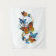 Symbol infinity made of gold, decorated with realistic orange and blue on a white background. Butterfly morpho and Monarch. Design with butterflies.