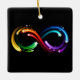 Symbol of infinity is artistically painted with fast moving, bright, luminous, rainbow colored comets with long flexible tails on black background. Rainbow infinity.