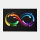 Symbol of infinity is artistically painted with fast moving, bright, luminous, rainbow colored comets with long flexible tails on black background. Rainbow infinity.