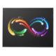 Symbol of infinity is artistically painted with fast moving, bright, luminous, rainbow coloured comets with long flexible tails on black background. Rainbow infinity.