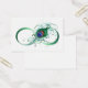 The symbol of infinity with a bright, green, artistic peacock feather on a white background. Tattoo style.