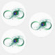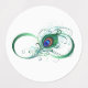 The symbol of infinity with a bright, green, artistic peacock feather on a white background. Tattoo style.