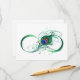 The symbol of infinity with a bright, green, artistic peacock feather on a white background. Tattoo style.