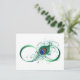 The symbol of infinity with a bright, green, artistic peacock feather on a white background. Tattoo style.