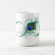 The symbol of infinity with a bright, green, artistic peacock feather on a white background. Tattoo style.