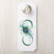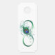 The symbol of infinity with a bright, green, artistic peacock feather on a white background. Tattoo style.