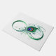 The symbol of infinity with a bright, green, artistic peacock feather on a white background. Tattoo style.