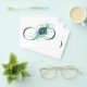 The symbol of infinity with a bright, green, artistic peacock feather on a white background. Tattoo style.