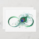 The symbol of infinity with a bright, green, artistic peacock feather on a white background. Tattoo style.