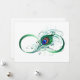 The symbol of infinity with a bright, green, artistic peacock feather on a white background. Tattoo style.