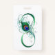 The symbol of infinity with a bright, green, artistic peacock feather on a white background. Tattoo style.