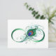 The symbol of infinity with a bright, green, artistic peacock feather on a white background. Tattoo style.